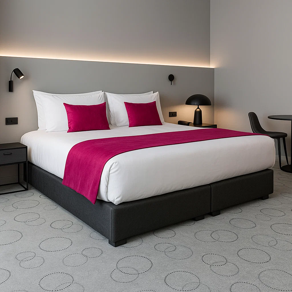 موکت هتلی NovaTex، گزینهای فوقالعاده برای هتلها و فضاهایی است که به دنبال ترکیب زیبایی و دوام در طراحی داخلی خود هستند. این موکت با طراحی جذاب و کیفیت بالای مواد ساخت، به محیطهای پرتردد هتلها، تالارها و راهروها جلوهای شیک و مدرن میبخشد. از آنجا که فضاهای عمومی هتلها به دلیل رفتوآمد زیاد مستعد سایش و آسیب هستند، انتخاب موکت مناسب میتواند تفاوت بزرگی در زیبایی و دوام محیط ایجاد کند. موکت NovaTex به صورت موکت رول طراحی شده است، که این ویژگی نصب آسان و یکنواخت آن را در فضاهای بزرگ فراهم میکند. با استفاده از موکت رول، نصب سریع و بدون درز انجام میشود و سطحی یکپارچه و مرتب در فضاهای وسیع ایجاد میشود. این انتخاب، بهویژه در تالارها و راهروهایی که نیاز به پوشش وسیع دارند، کارآمد است. یکی از ویژگیهای برجسته NovaTex، مقاومت آن در برابر سایش و فشار است. این موکت از مواد با کیفیت و بافتی مقاوم ساخته شده که توانایی تحمل رفتوآمد زیاد را دارد. به همین دلیل، برای فضاهایی مانند تالارها و راهروها که بهطور مداوم در معرض استفاده هستند، انتخابی ایدهآل محسوب میشود. علاوه بر این، NovaTex به راحتی در برابر لکهها و آلودگیها مقاوم است و بهراحتی تمیز میشود، که این ویژگی به نگهداری و طول عمر آن کمک میکند. NovaTex با طرحی مدرن خود، به راحتی میتواند با هر نوع دکوراسیونی هماهنگ شود و فضای هتل یا تالار را به محیطی جذاب و مدرن تبدیل کند. به طور کلی، موکت هتلی NovaTex با ویژگیهای مقاومت بالا، طراحی زیبا و عملکرد مناسب برای فضاهای پرتردد، گزینهای بینظیر برای هر هتل است.